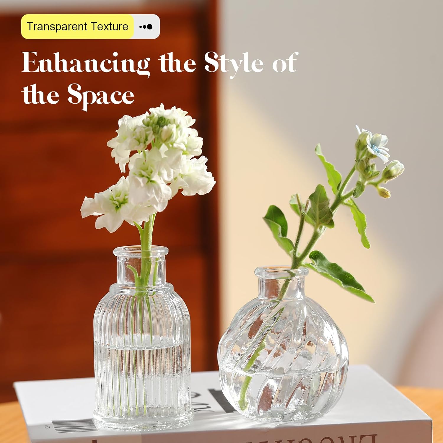 • High-Quality Glass: These charming small flower vases are made of thick and strong glass, which is durable and not easily broken.These bud vases in bulk feature a stable,thickened base and finely textured surfaces that catch the light beautifully,letting you appreciate each flower stem or garden cutting in vivid detail.Bring the natural charm of the outdoors right into your home with these small glass vases.