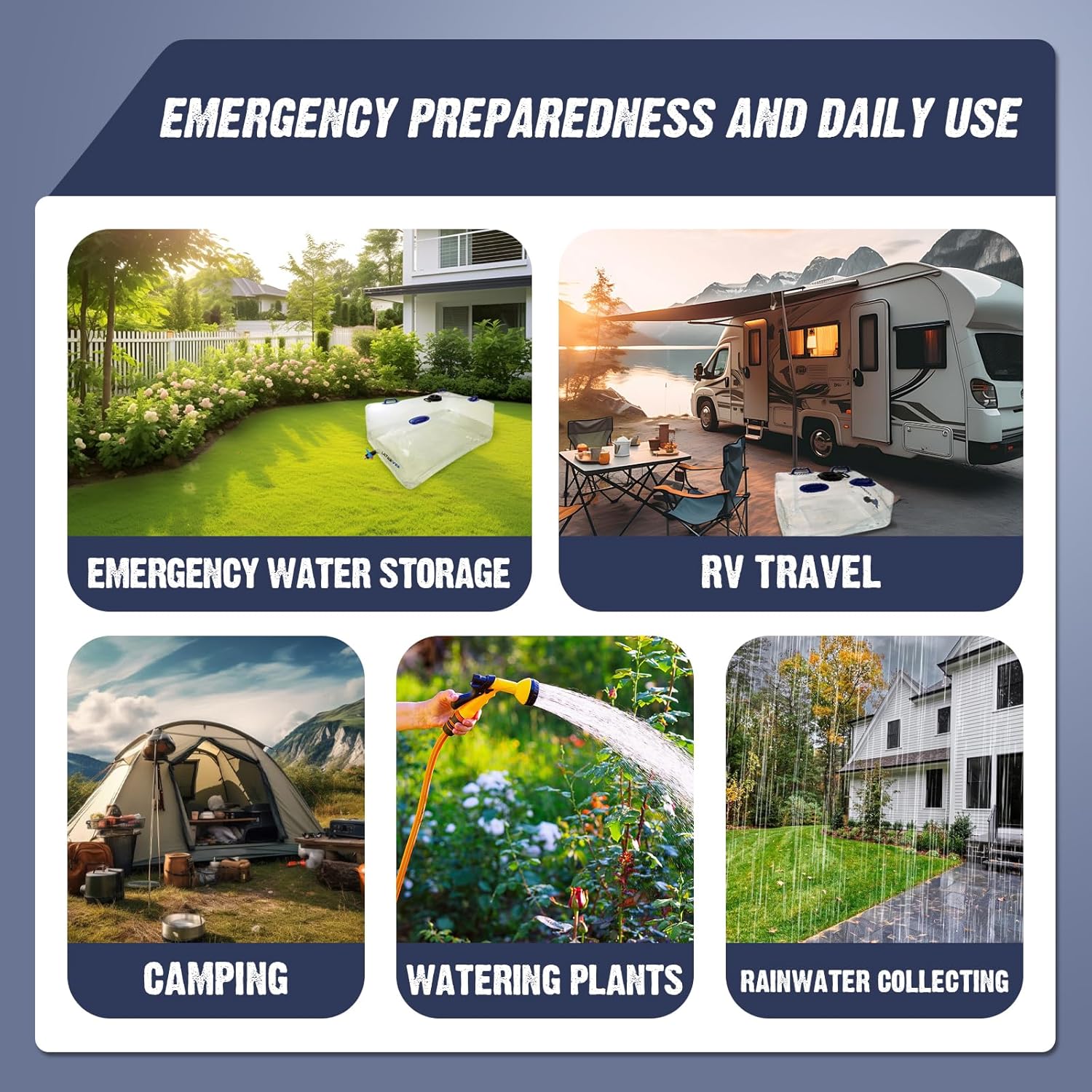 • EMERGENCY PREPAREDNESS AND DAILY USE: Our collapsible water storage bladder come in all the accessories you need and enable you to quickly & conveniently be ready to store, transport & dispense all the water, without taking up much space before you need it. Perfect for storing water for sanitation & hand-washing stations and being prepared for natural disasters & unwanted emergencies. Notes: This product is not suitable for drinking water and corrosive substances.