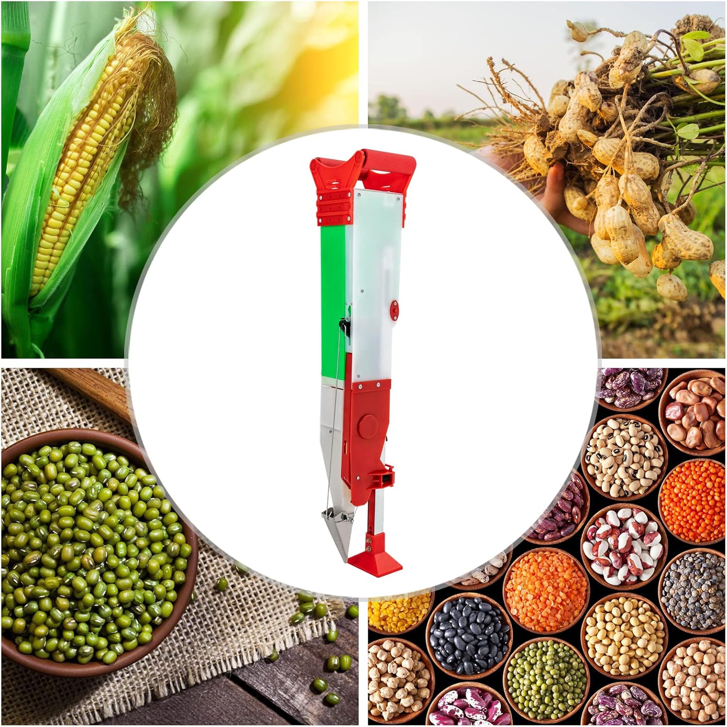 Stand-Up Manual Seeder, Adjustable Depth & Height Hand Planter Precision Sower Seed Dispenser Small Seed Distributing Tool with Interchangeable Mold for Corn Soybean Peanut Garden Planting