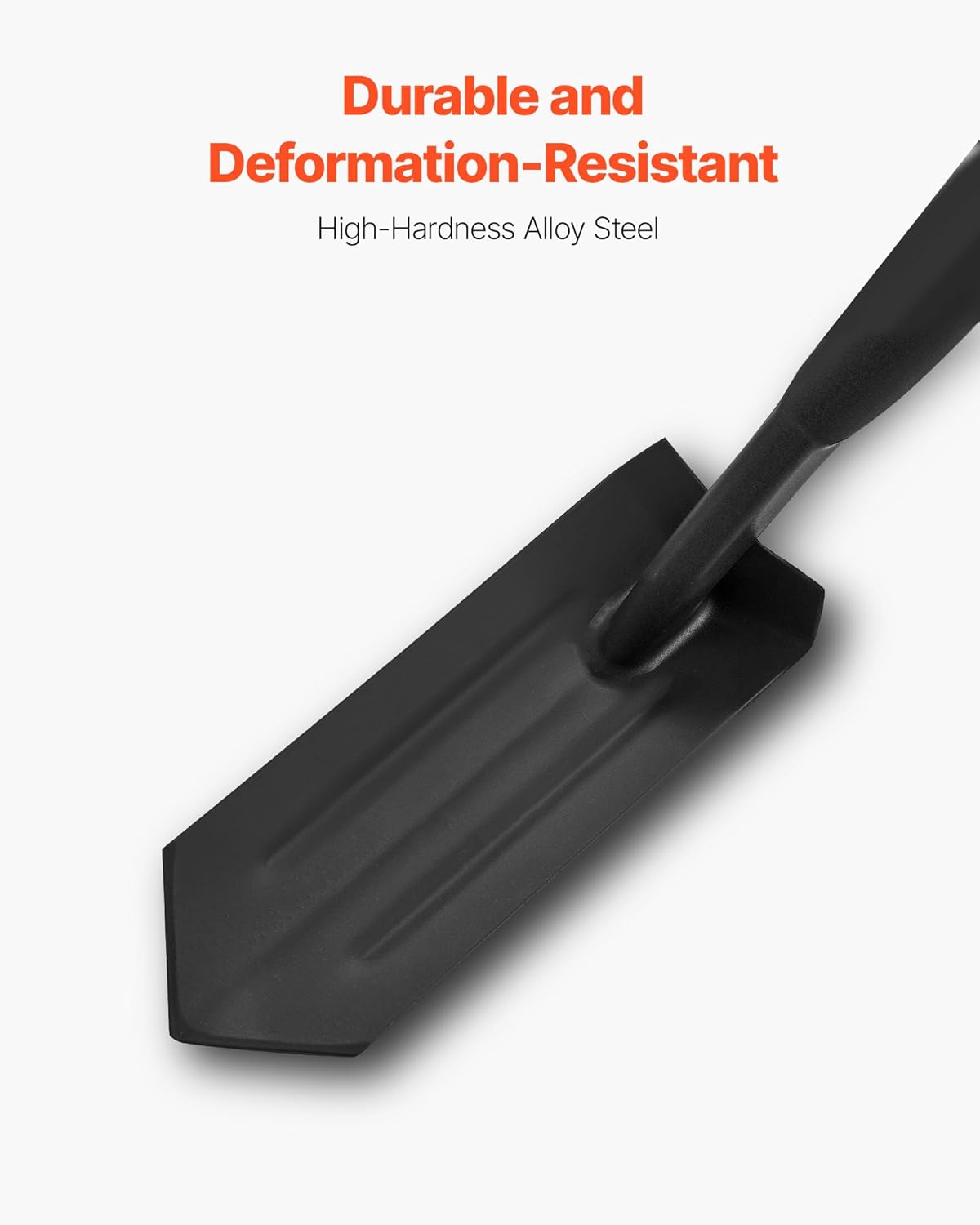 • Sturdy Material: Built with a high-strength alloy steel blade and a thickened fiberglass handle, this trenching shovel offers the support needed for demanding jobs. It stays firm without bending and handles digging and moving soil with ease