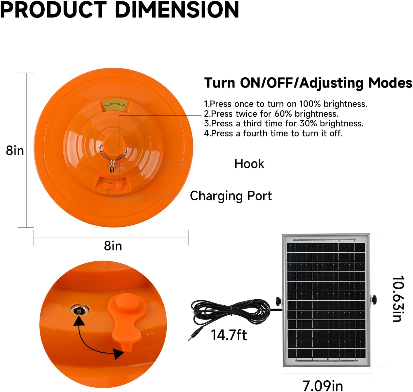 • 【Long-life Span】Our solar pendant grow lights comes with waterproof monocrystalline silicon 10.6in x 7in solar metal panels and large capacity batteries with high photovoltaic conversion efficiency. This battery powered plant grow light can effectively utilize sunlight, shorten the charging time and extend the lighting duration. Note: Charging efficiency depends on sunlight conditions.