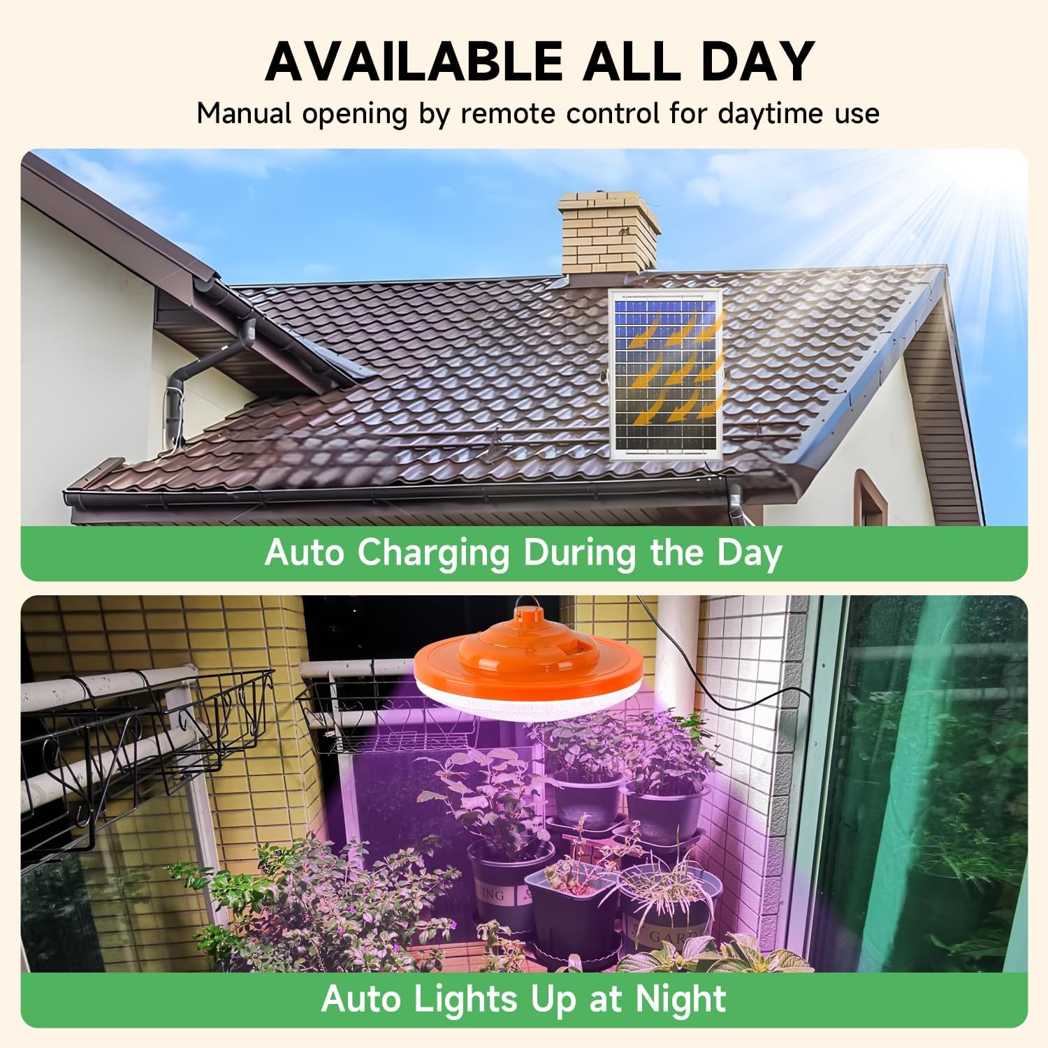 • 【Solar Powered & 0 Electricity Bill】This solar plant grow light automatically lights up at night and turns off during the day when connected to a solar panel. Solar grow lights for indoor plants can be used as supplemental light for plants to promote growth and there's no need to pay any electricity bill for it! NOTE: manual opening by remote control/button on the bulb for daytime use.