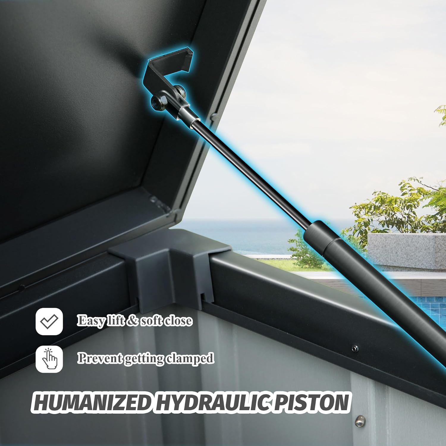 • 🌞【Humanized Hydraulic Pistons】: Easy lift and soft close mechanism allows the top completely open and shut smoothly with minimal effort-easy to use and no smashed fingers.