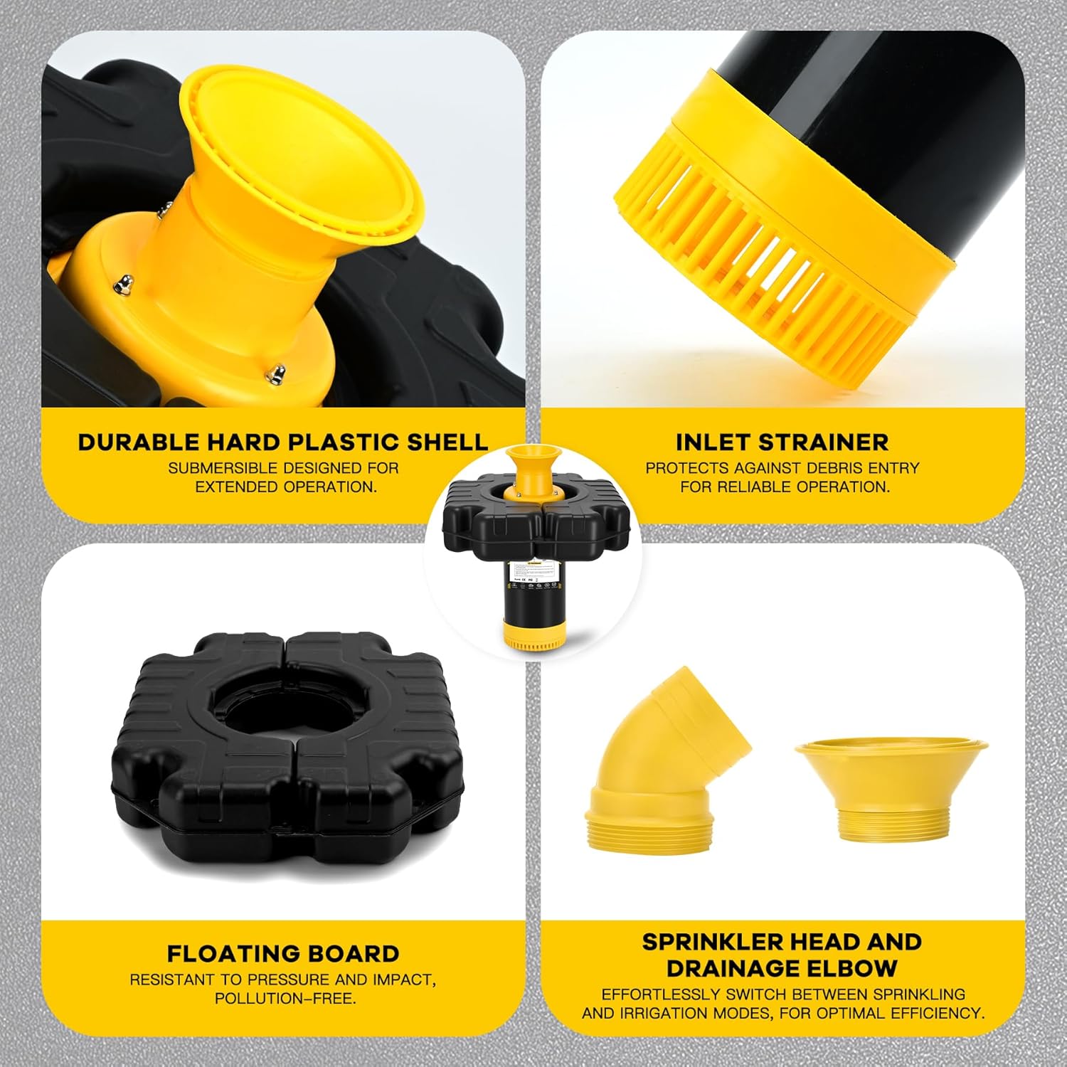 • Instant Pond Aeration: Effortless Floating Installation: Simply unpack, float, and power on. This aerator automatically adjusts to water levels, and optional ropes/poles provide extra stability for a truly hassle-free setup.
