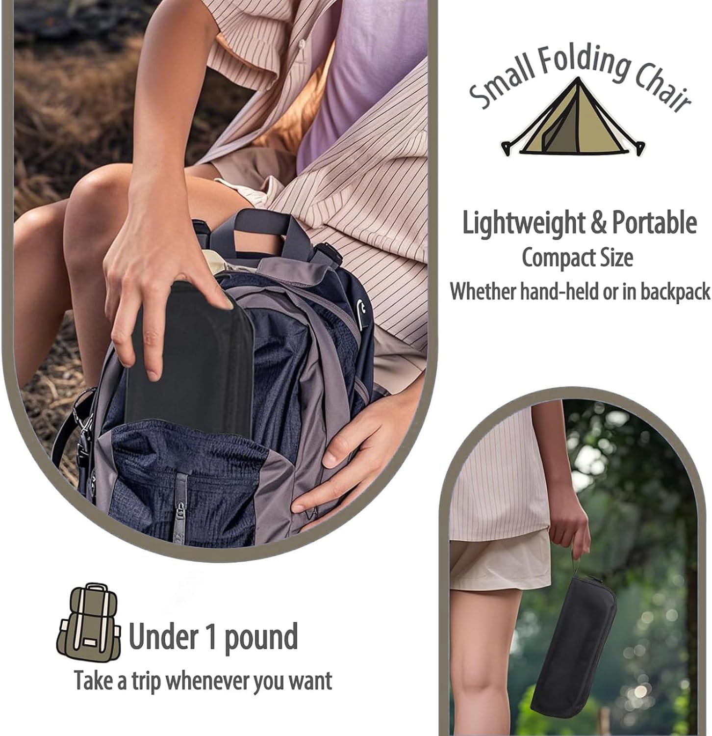 Hygite Portable Stool,10 Inch Small Folding Stool for Adults,Ultralight Black Camping Stools for Hiking and Fishing,Hold Up to 265 LBS