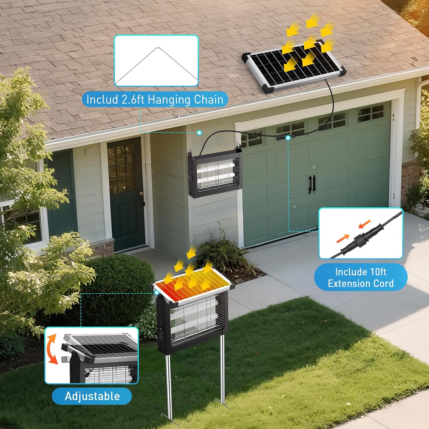 • [4500V High Voltage Power Grid] Increases mosquito catching efficiency by 65%; the 4500V power grid effectively eliminates pests. IP66 waterproof rating, rain and splashproof, perfect for patios and pools.