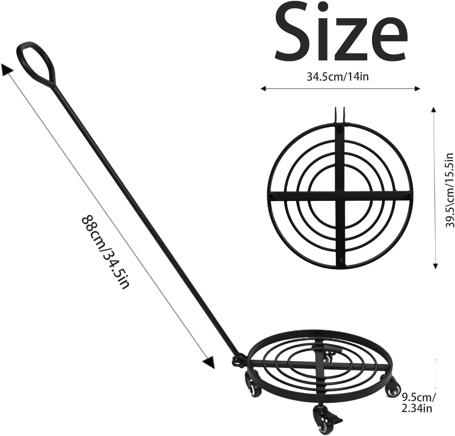 14" Plant Dolly with Wheels - Heavy Duty Rolling Planter Base, Lockable Wheels, Detachable Handle, Ideal for Indoor/Outdoor Use with Large Pots and Easy Transport Solutions