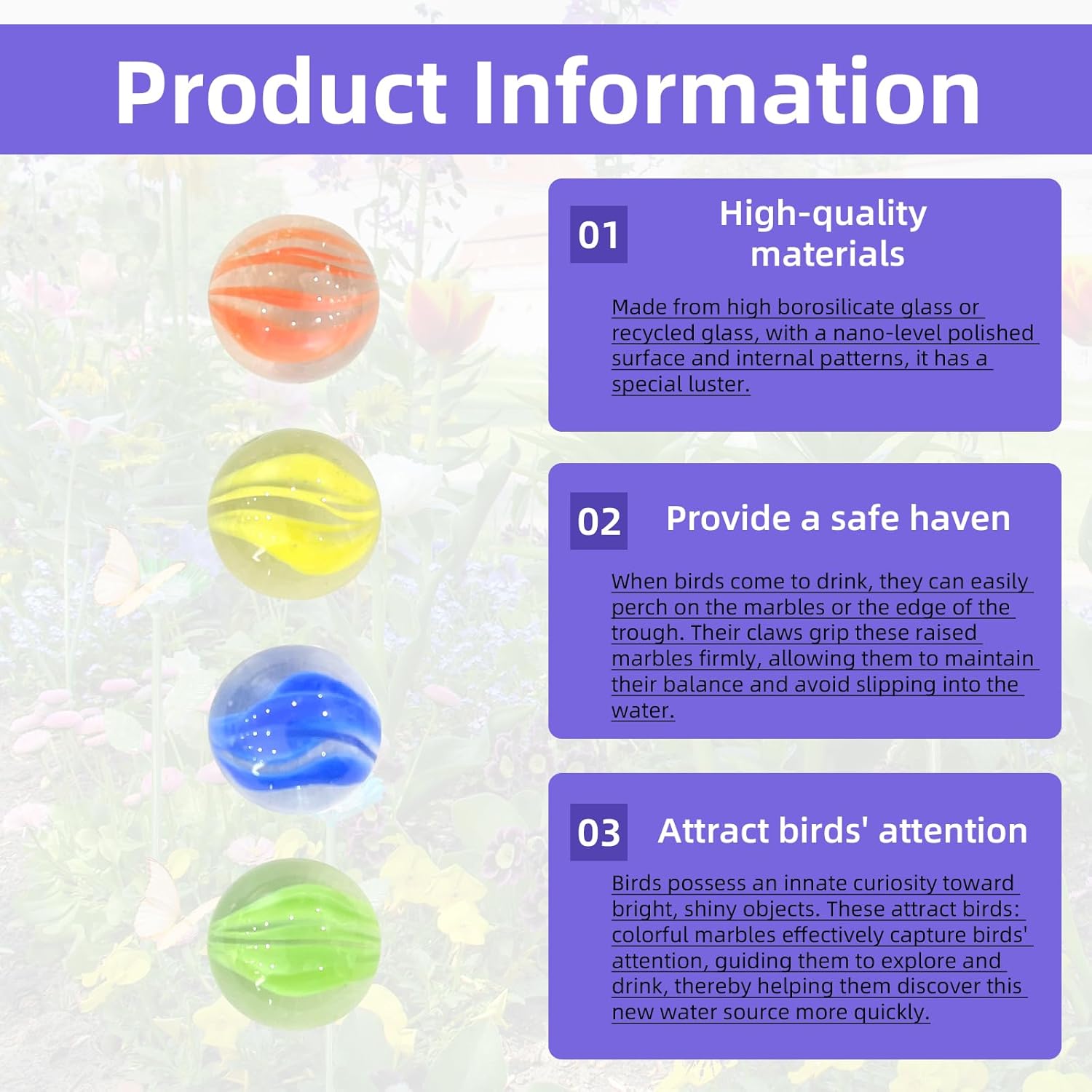 • Multi purpose function: Our product not only includes 4 bee insect drinking cups, but also 20 glass marbles. The garden bee watering station can provide water and food, such as sugar water, for bees and butterflies. It can also serve as both a bee bathtub and a butterfly bathtub. Inject shallow water into the cup and add colored beads to prevent drowning. It includes multiple marbles to ensure you can replace them at any time if necessary.