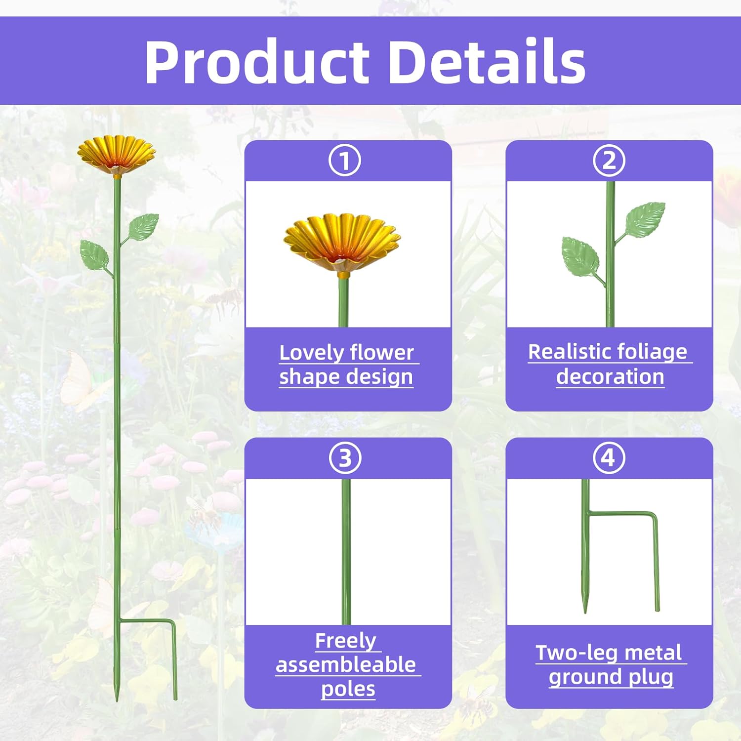 • Tool free installation: The flower stem and flower parts can be assembled without any tools, and the base can be inserted into the garden soil for successful installation. In addition, the pole diameter can determine the installation height on its own, creating a charming multi-level garden landscape.