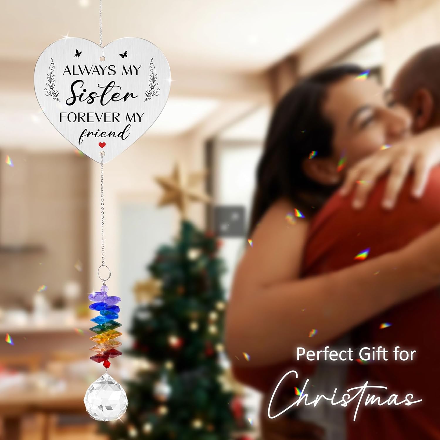 Aluminum Ornament Suncatcher Birthday Gift for Sisters - Unique Gift from Sister Brother - Crystal Rainbow Maker - Sister Suncatcher - Window Hangings Home & Garden Decor