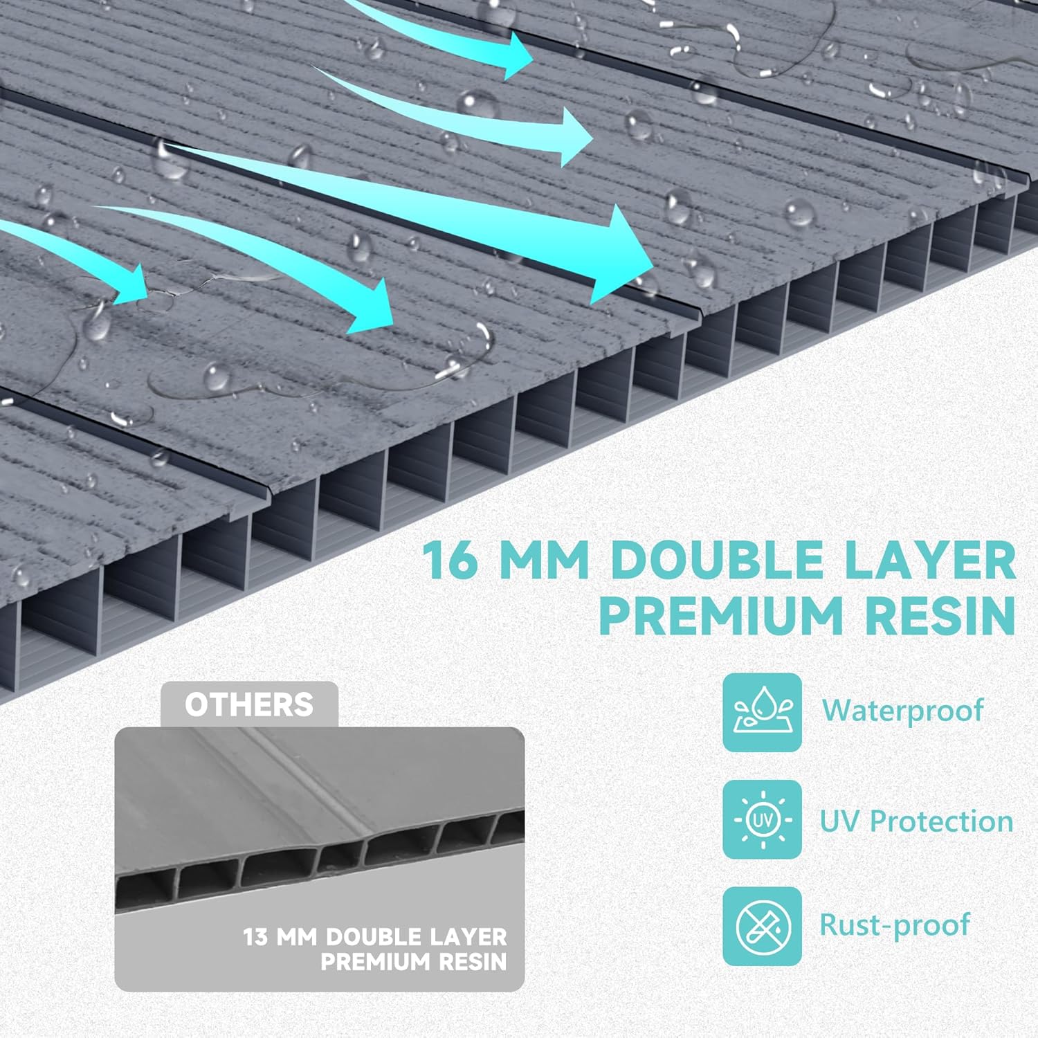 • Heavy-Duty Resin Construction – Crafted from high-quality resin, the shed offers exceptional durability and weather resistance, standing strong against UV rays, moisture, and temperature swings.