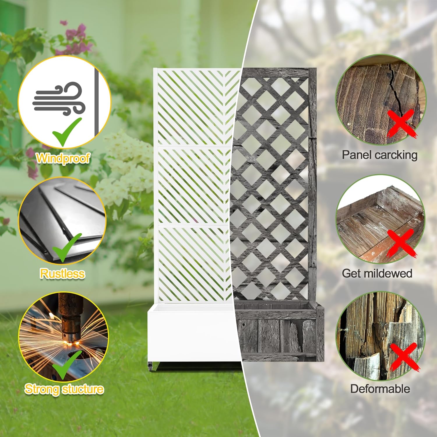 FENCY Metal Raised Garden Bed with Wheels and Trellis,73"x35"x16" Planter Box for Climbing Plants, Vegetables & Vines, Features Privacy Screen and Drainage Holes (White-Arrow)