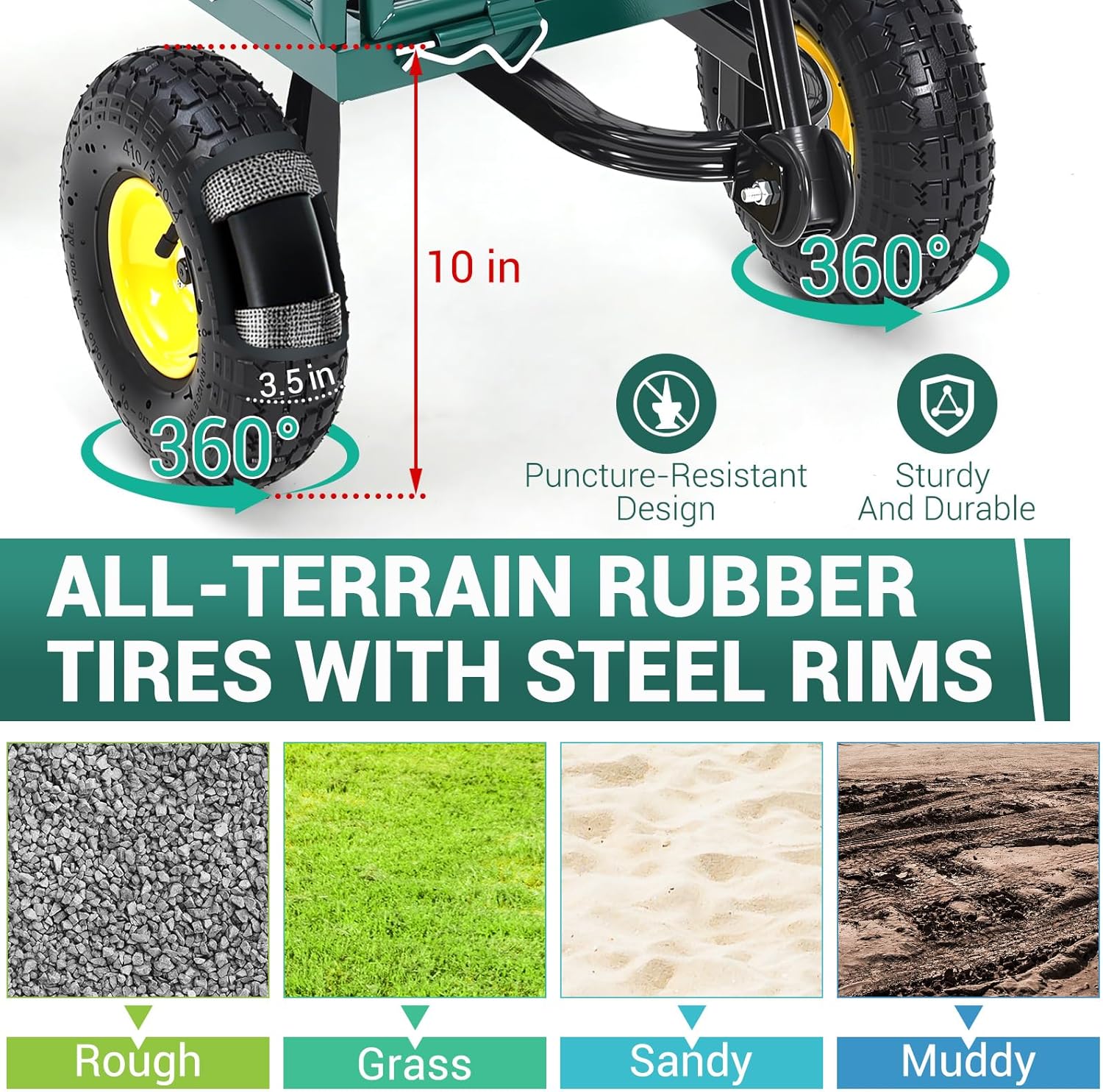 • USER-FRIENDLY SWIVEL HANDLE: The cart is equipped with a 180-degree swivel handle for easier maneuvering. The handle has a rubberized grip, which increases operating comfort and reduces fatigue during prolonged use. This thoughtful design allows you to navigate through tight spaces and corners with ease, making gardening more efficient.