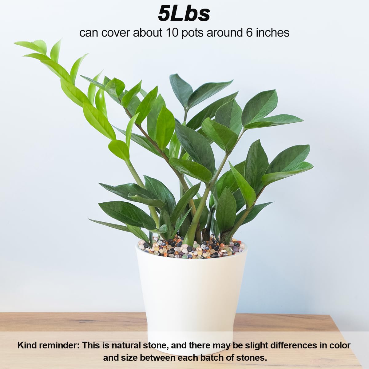 • 【Size and Quantity】The Outdoor/indoor Decorative Stones are packaged into 1 pound and 5 pounds and 10 pounds when they are packed. 1 lbs can cover about 2 pots around 6 inches.5 lbs can cover about 10 pots around 6 inches The size of the Outdoor/indoor Decorative Stones is about 0.4 inch.