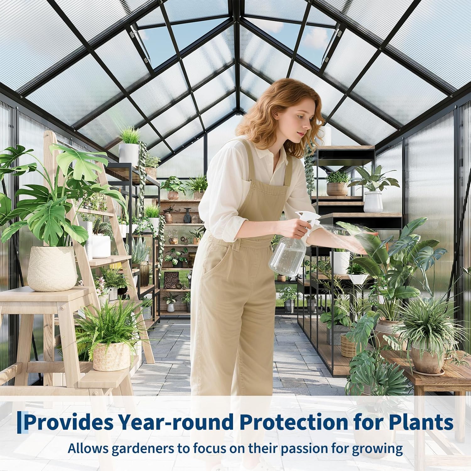 • 【40-Minute Quick Assembly】​Say goodbye to tedious installation processes. Our innovative quick-install system features slide-in panels and pre-drilled components, rigorously tested over 500 times. Compared to traditional greenhouse models, it increases assembly efficiency by 40% and improves structural stability by 35%. This means you can spend less time setting it up and more time indulging in your passion for gardening.