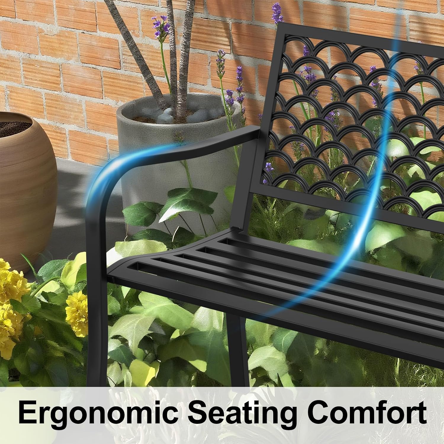 • 【Sturdy & Durable Build】Crafted from heavy-duty steel with a reinforced frame, the outdoor metal bench is perfect as a garden bench, patio bench, or front porch bench. Designed for stability and strength, it offers safe seating year after year. Ideal for families wanting a metal outdoor bench that’s both stylish and dependable for any yard, porch, or lawn.