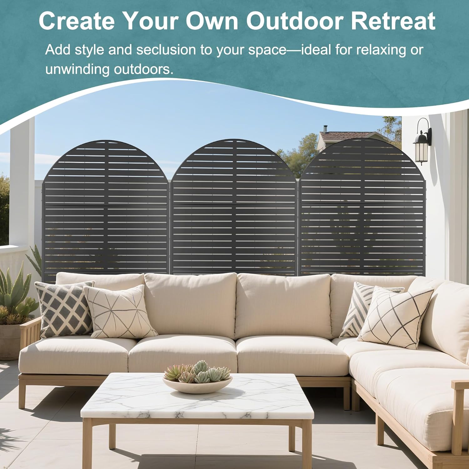 • 【Robust Metal Build】The metal privacy screen boasts a robust construction crafted from high-quality galvanized steel. Designed to endure the rigors of outdoor elements, its sturdy build guarantees prolonged durability.