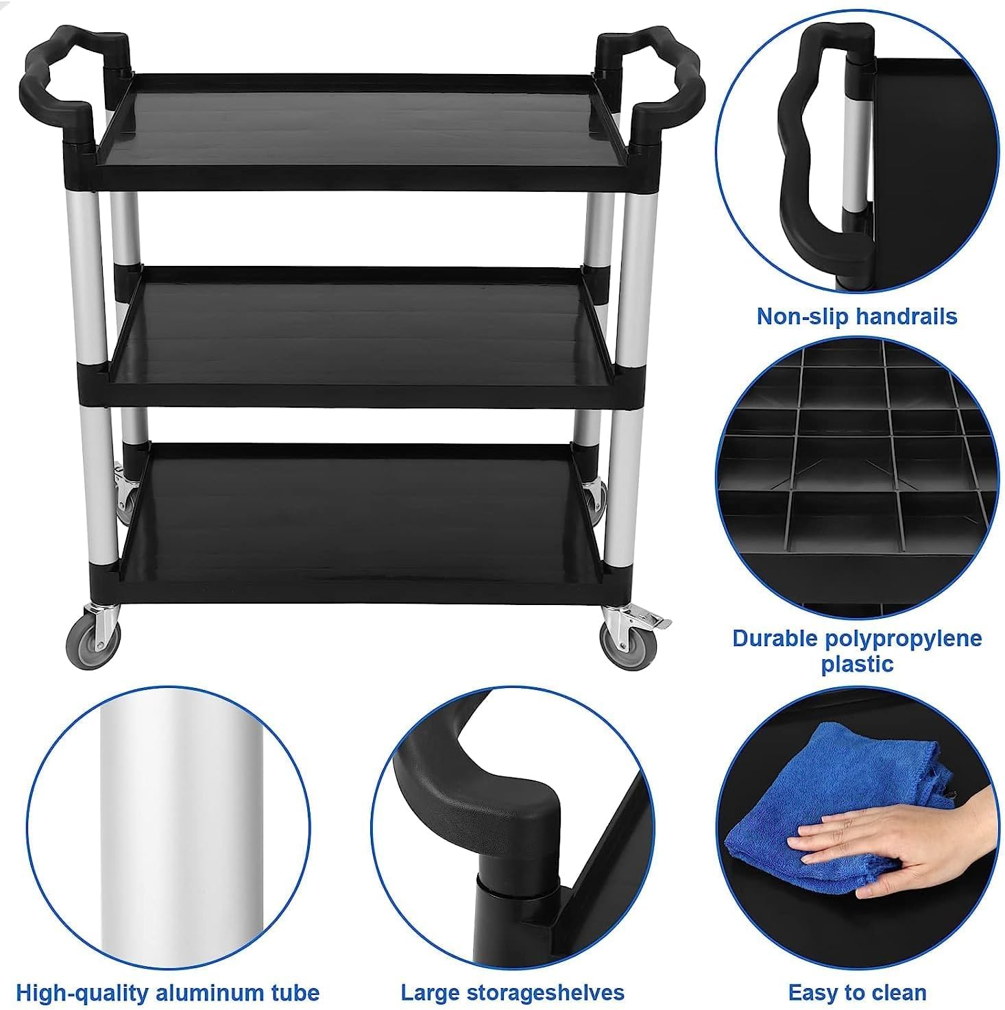 • 【360 lbs Heavy Load Support】 Each shelf holds 120 lbs (360 lbs total) with structural foam durability, handling heavy items like bulk cleaning supplies, foodservice gear, or workshop tools reliably.