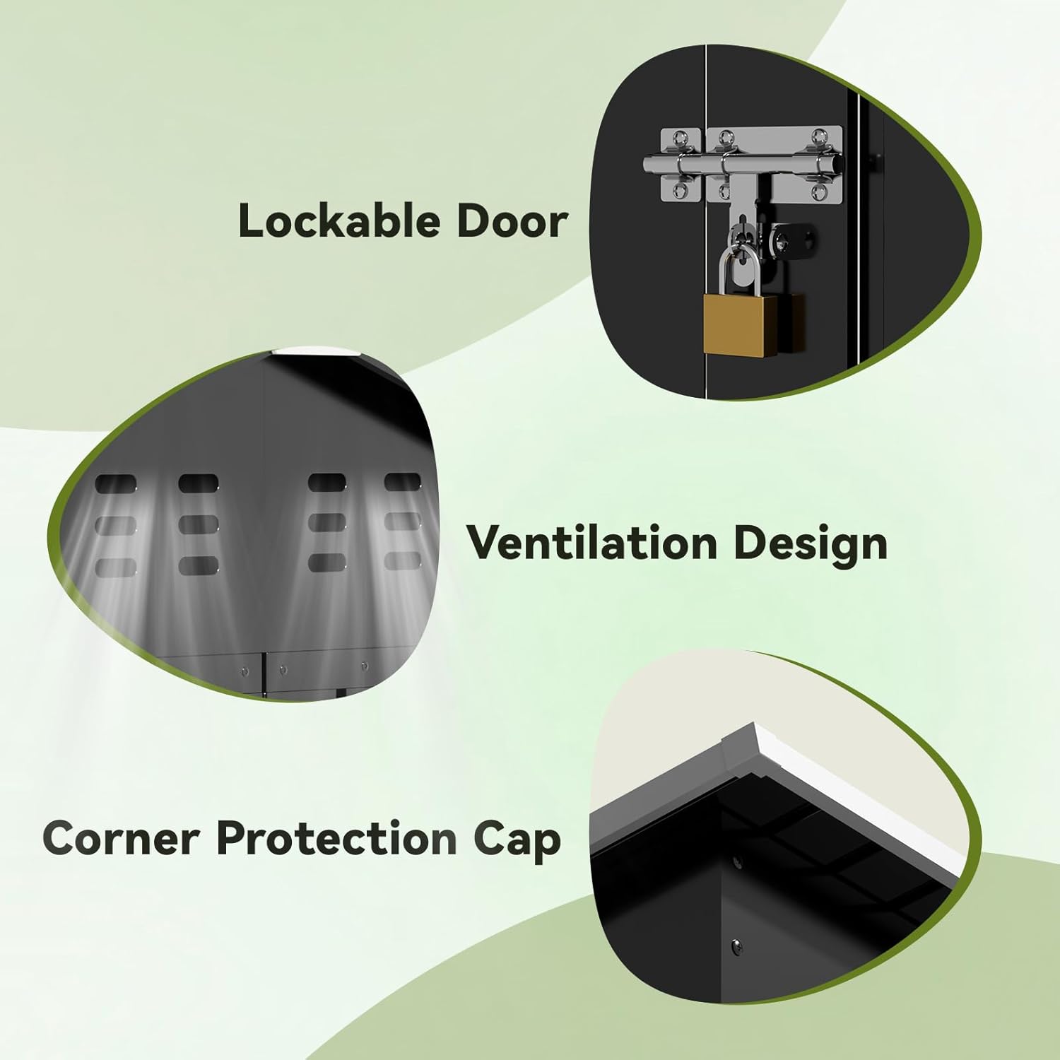 • Lockable Door and Vents:The lockable door provides security,keeps your tools away from being stolen,and avoids small animals from entering accidently;Two Top Vents for Better Airflow,Keeping the Space Cool and Odor-Free