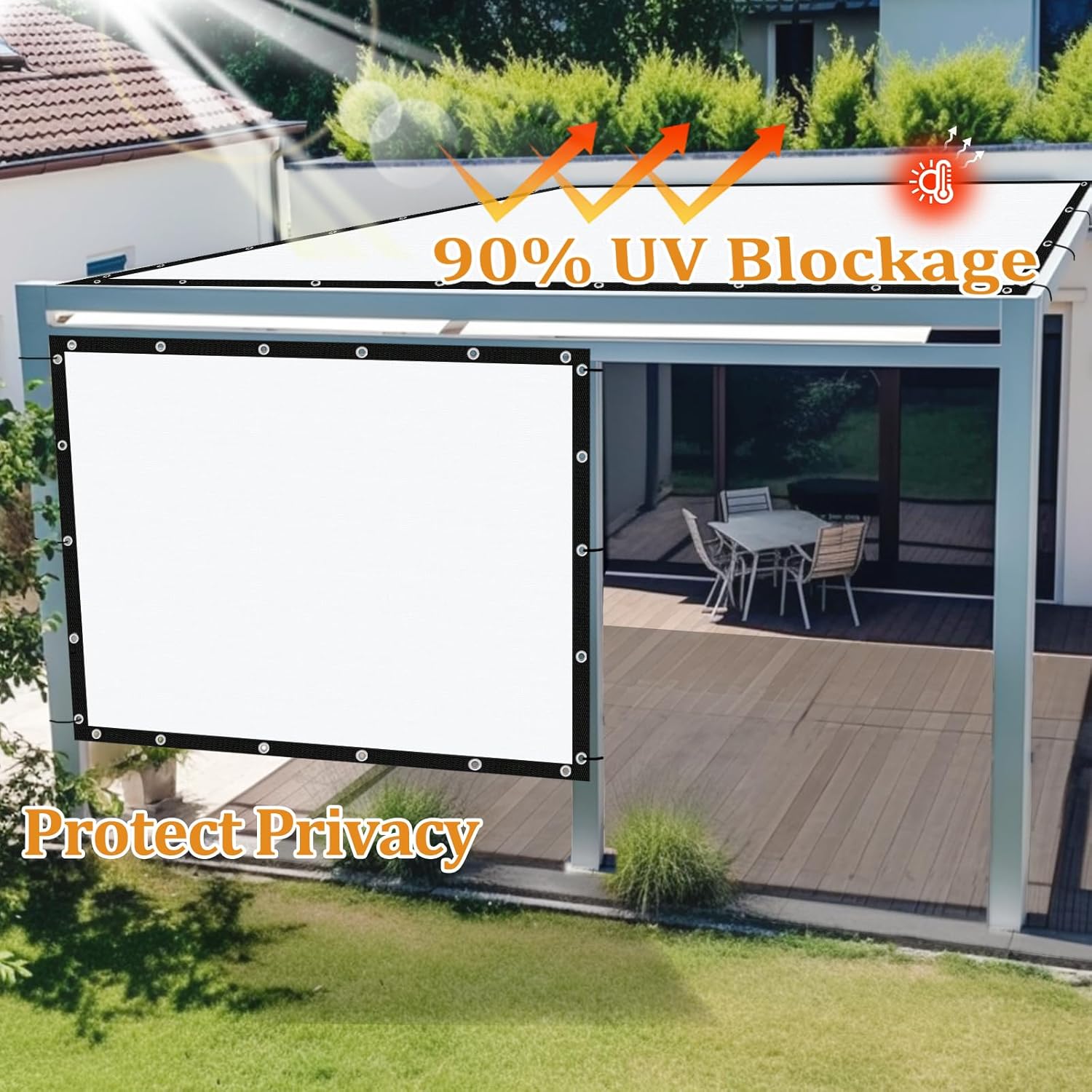 • [Multiple Applications]This shade trap screen creates a comfortable outdoor seating area for you, offers a level of privacy from the outside without completely blocking your view of it. You can also use it to shield your greenhouse and plants from excessive sun exposure, or cover your pet house. Don't let the sun dictate your outdoor activities; take control with our premium shade solution.