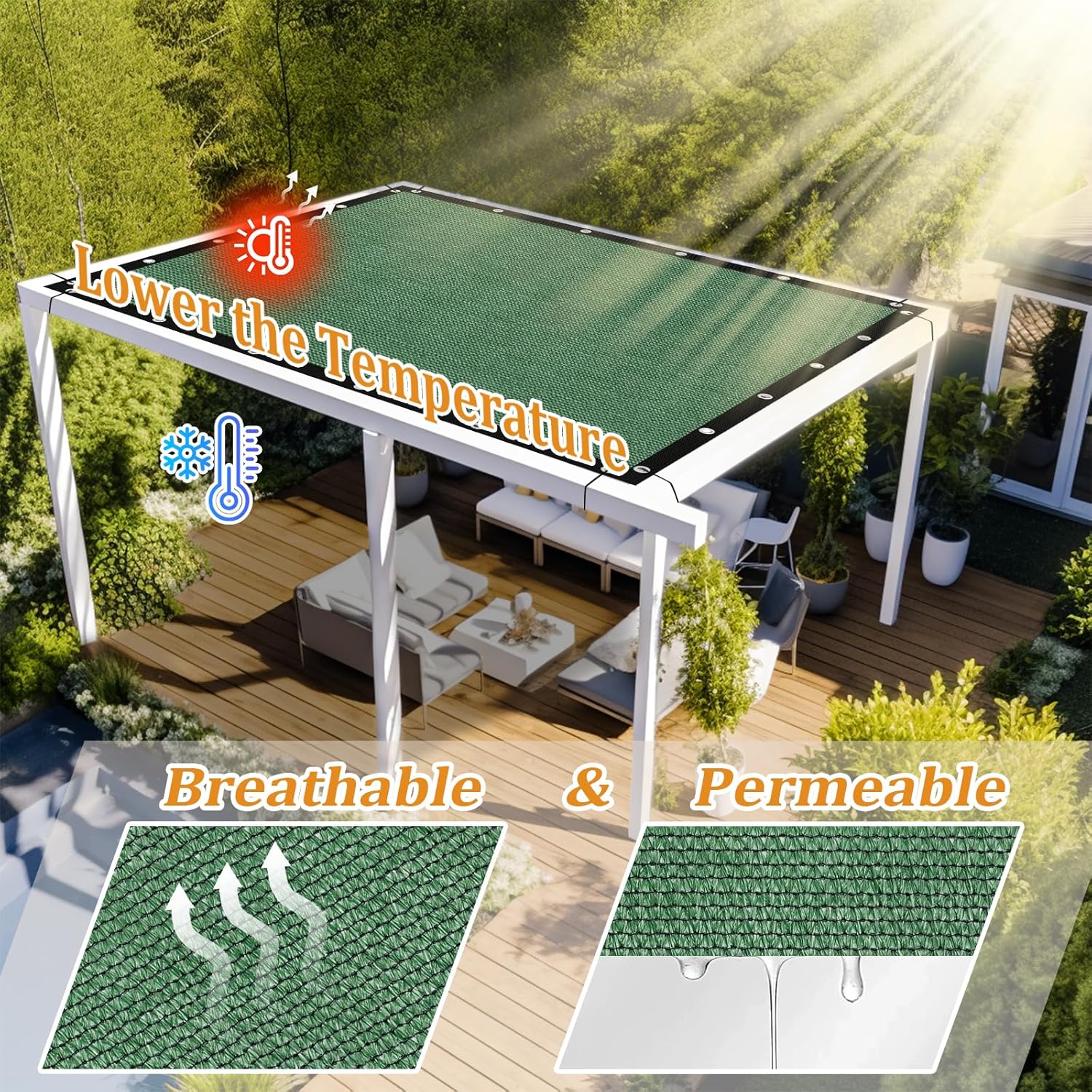 • [Easy to Install] With included grommets on each sides every 13 ft space and fixing accessories, you can easily attach the pergola shade cover to various structures while ensuring uniform stress. Whether you're looking to cover your backyard, carport, or playground, you can have it up and providing shade in no time.