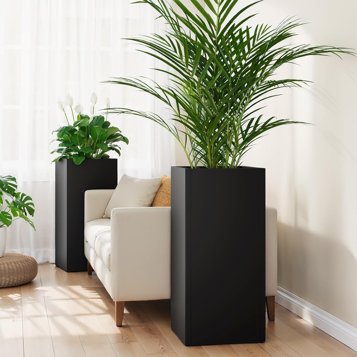 Stoog 30" Tall Planters for Outdoor Plants, All-Weather Metal Planter Boxes Set of 4, with Removable Insert Shelf, Modern Design, Indoor/Outdoor Use, Black