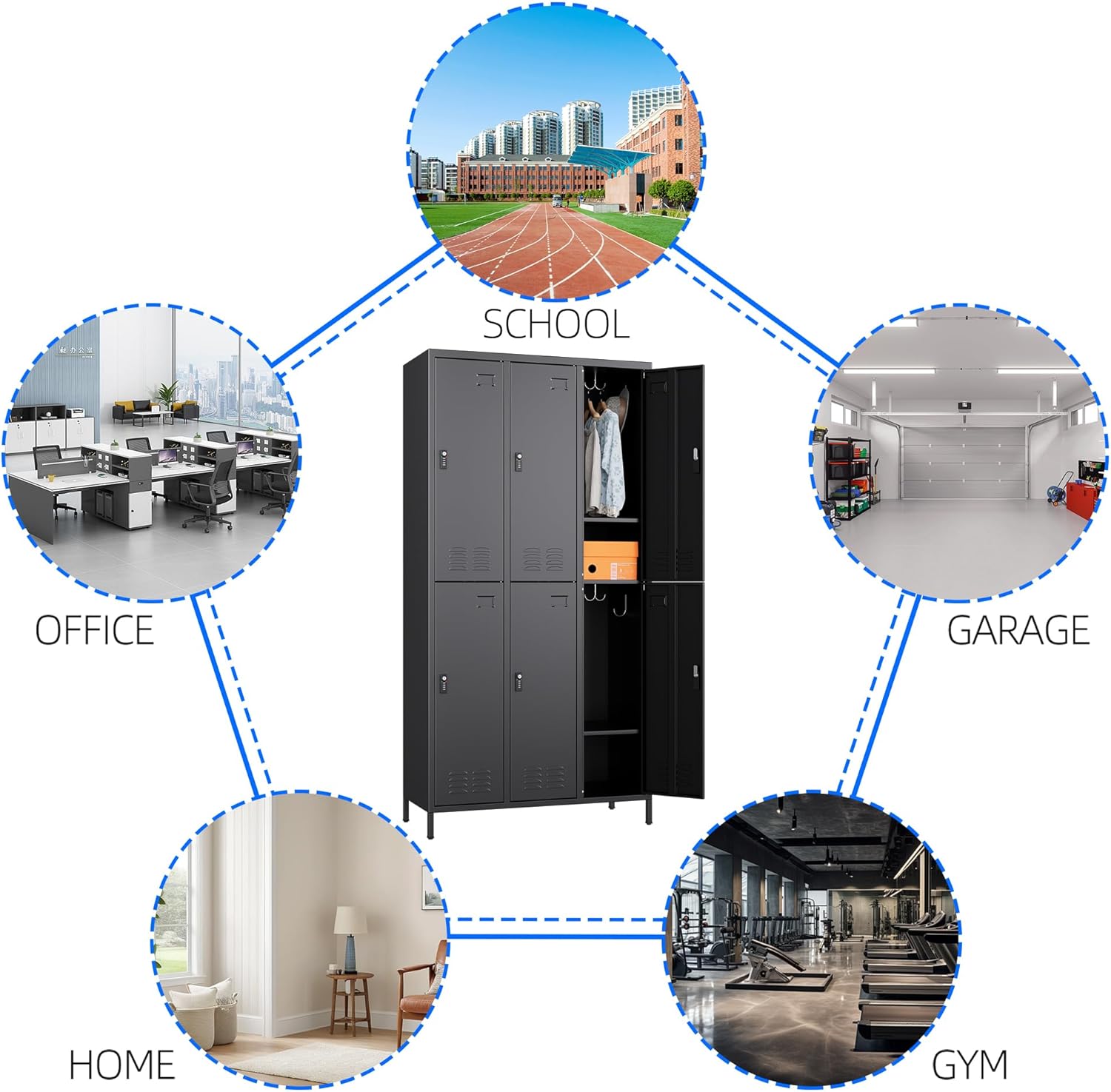 • 【Complimentary Hooks】We provide an additional 18 hooks for this 6 doors metal locker. There are reserved holes on the cabinet to install hooks for hanging small items such as scarves, hats, keys, bags, etc.