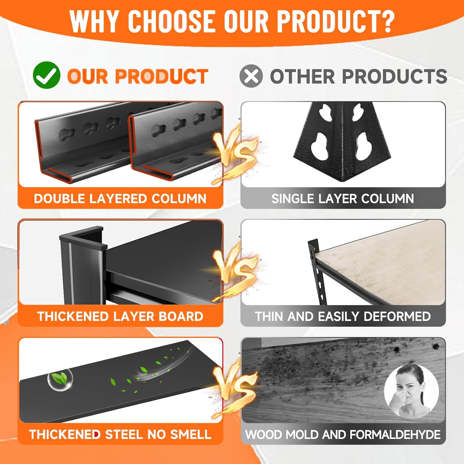 • 【Quality Assurance and Professional Support】 Our professional team provides 24/7 online service. Every step from production to delivery undergoes rigorous inspections and passes three distinct quality checks. The reinforced packaging with corner protectors safeguards your metal garage storage shelving unit during transitIf. you have any problems after receiving the goods, please contact us and we will handle every issue encountered by the customer properly.