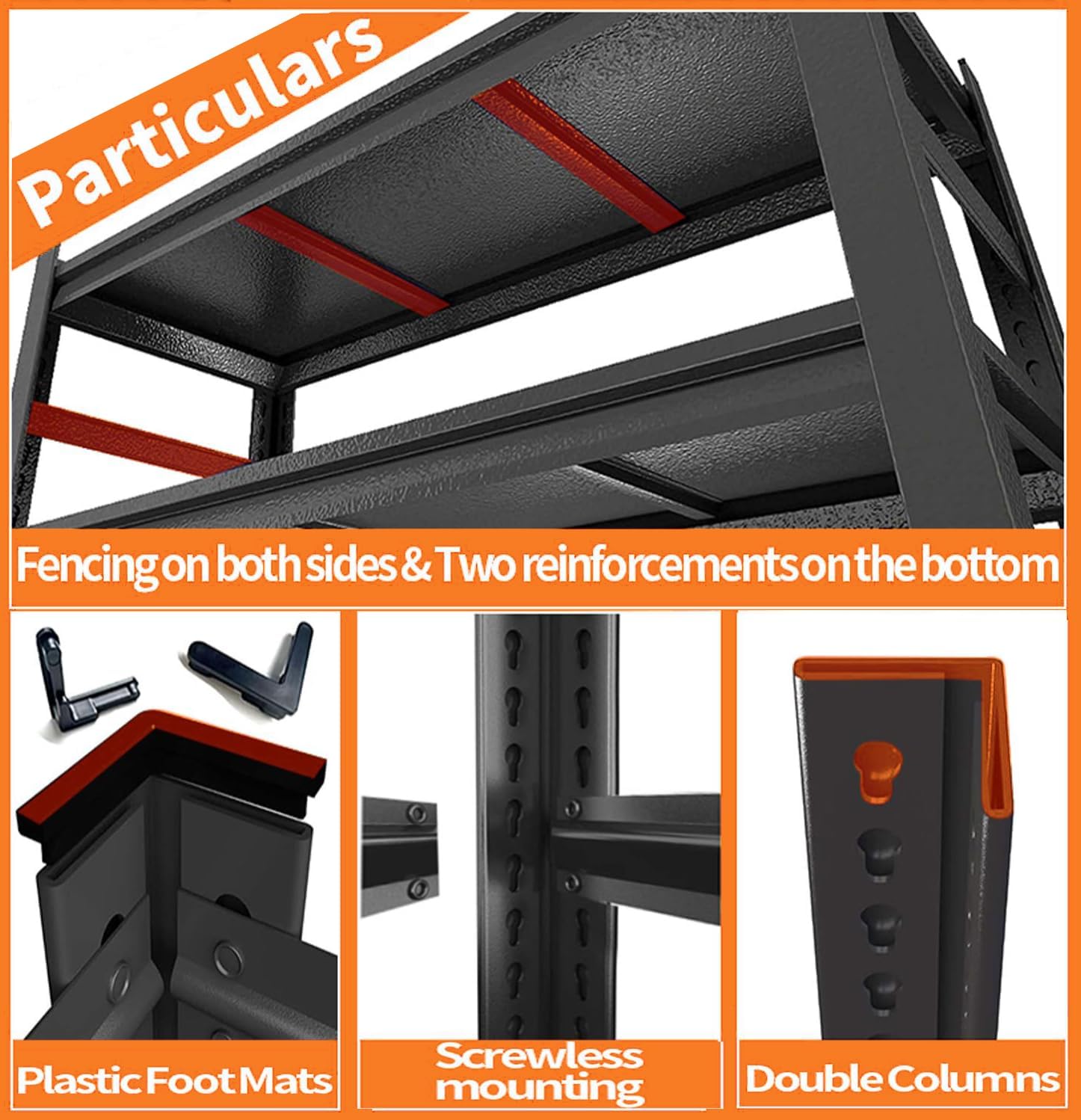• 【Quick installation of a set of garage storage shelves in 10 minutes】This metal storage shelf adopts an interlocking design, which does not require any bolts or nuts for installation. It does not even require any installation tools. A set of 5-Tier metal shelves can be installed by hand in 10 minutes.