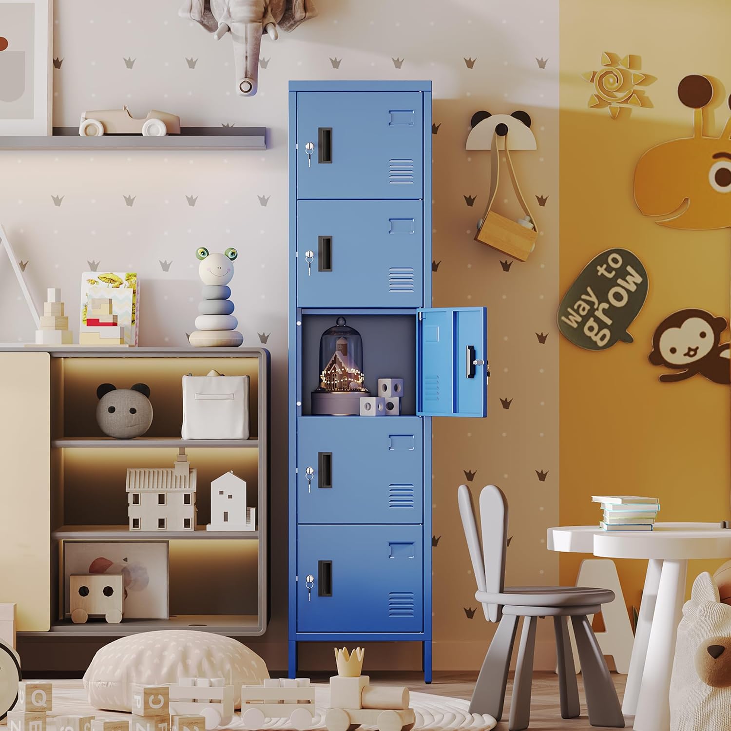 Metal Locker with Lock and Ventilation Holes,Metal Storage Locker with Business Card Slot for Home,Gym,Garage,School,Office,66" H x 15.8" W x 15.8" D Assembly Required,Blue