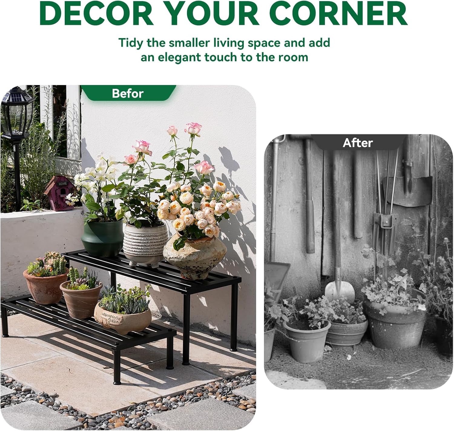 • VERSATILE DISPLAY: Ideal for showcasing plants, flowers, and decorative items in living rooms, balconies, gardens, and patios