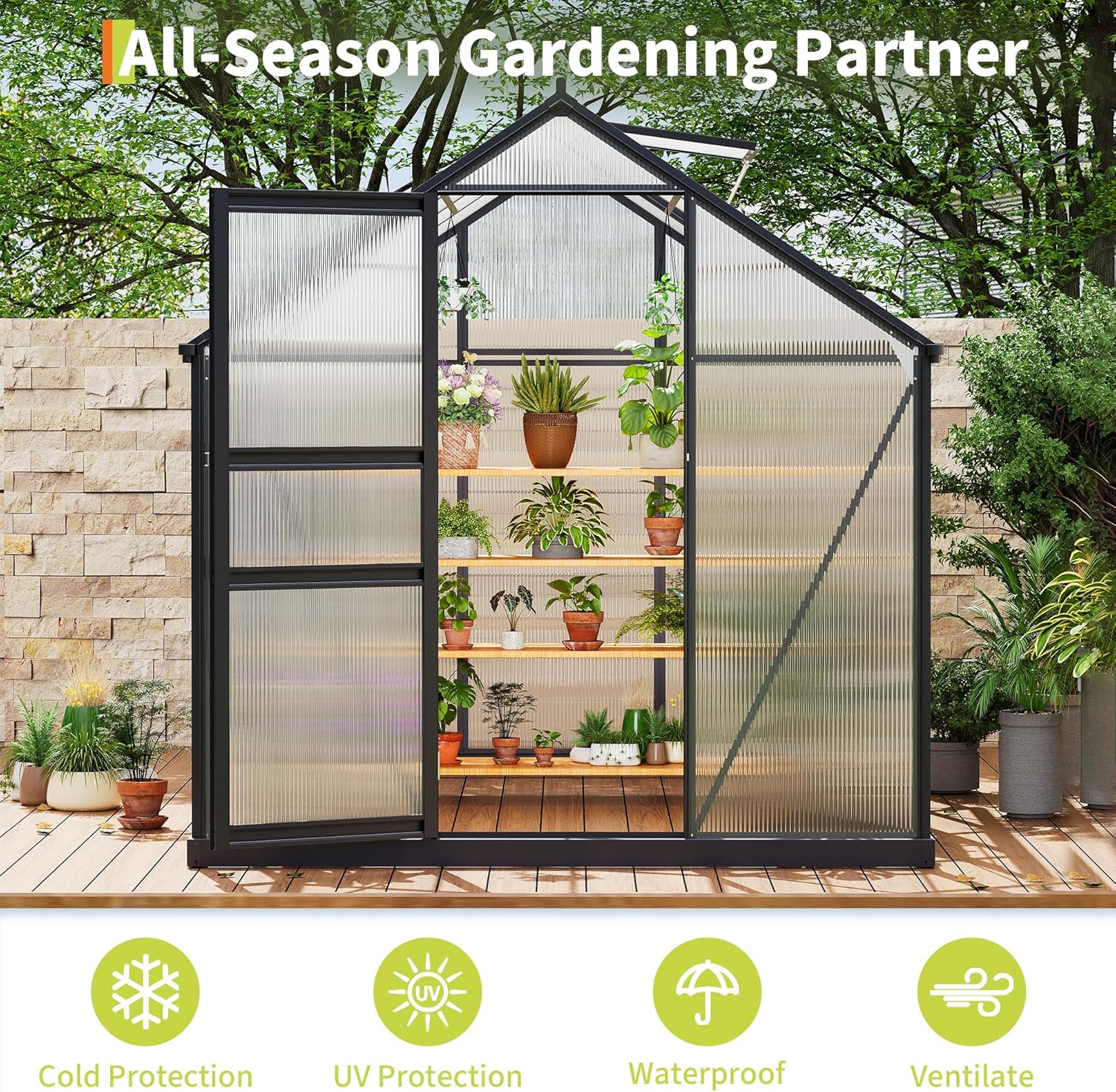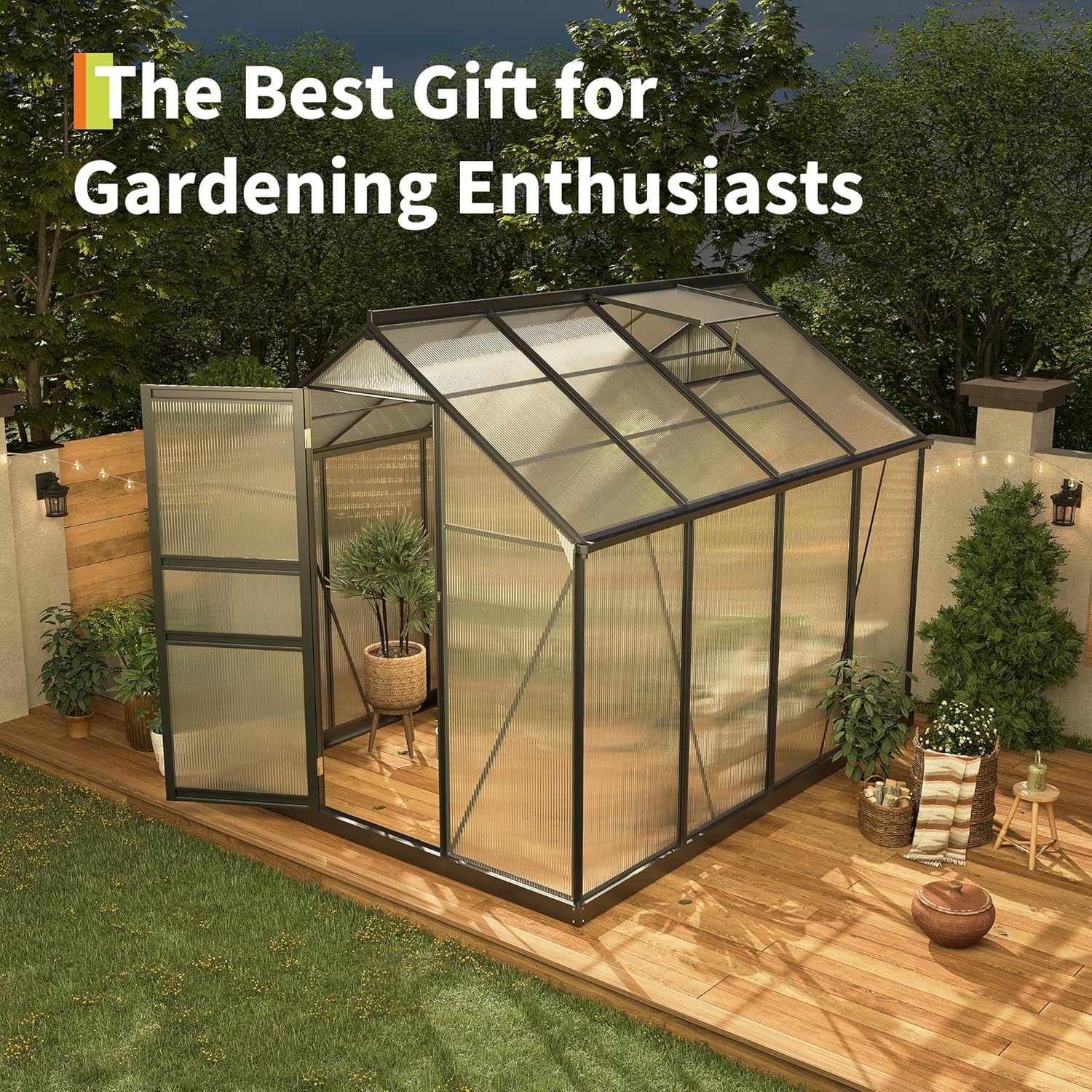 6×8FT Polycarbonate Greenhouse for Outdoors, Large Walk in Green House Kit and Winter Garden Planting, Enhanced Aluminum Green Houses for Outside to Protect Vegetables or Plants