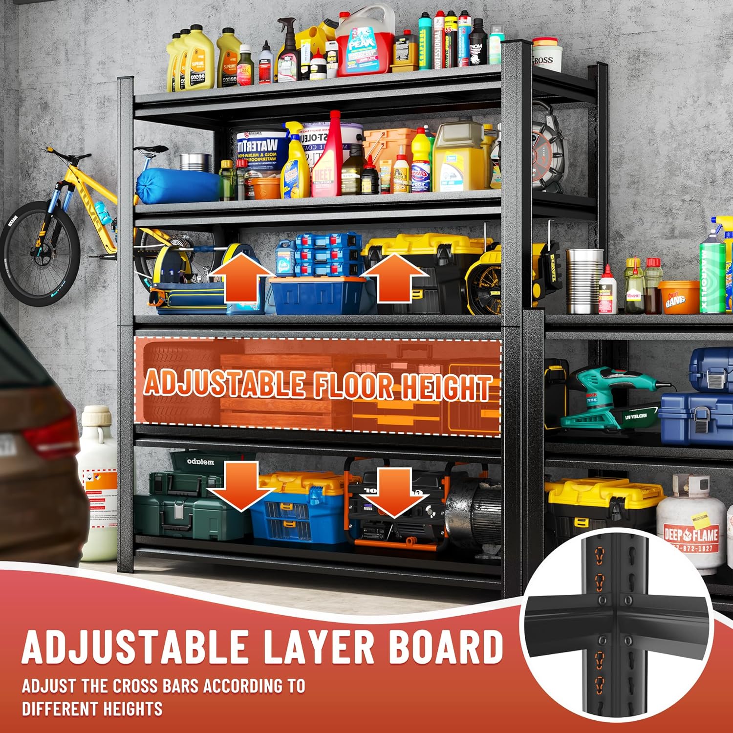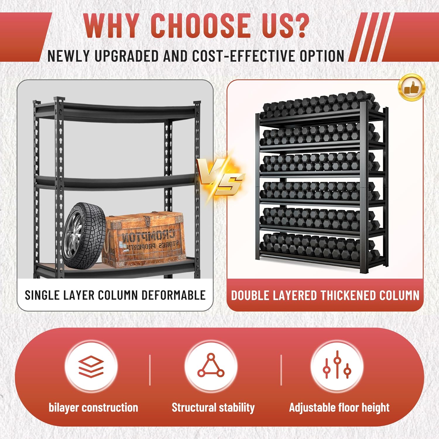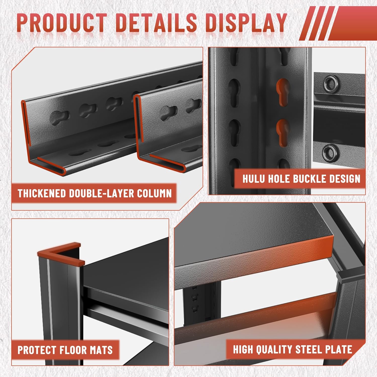 • 【Heavy-Duty Construction】Our Garage Shelving is built to last. With fully steel shelves and double-thick columns, this shelving unit provides exceptional strength and durability, ensuring that your storage needs are met with confidence
