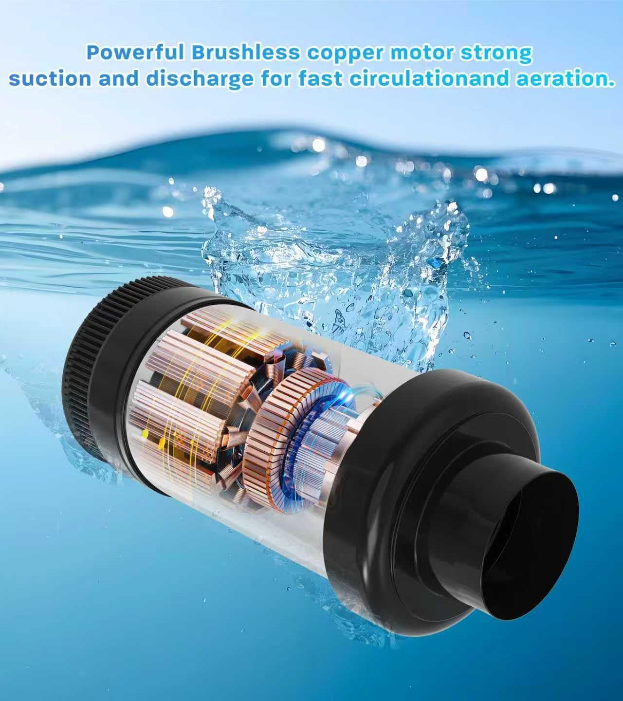 • 【Durable Aerator Design】The floating aerating pump adopts a high-efficiency oil-free motor, an anti-clogging inlet filter screen, and a large stabilizing float, which can ensure long-term stable operation, allowing it to easily handle various weather conditions and water environments.