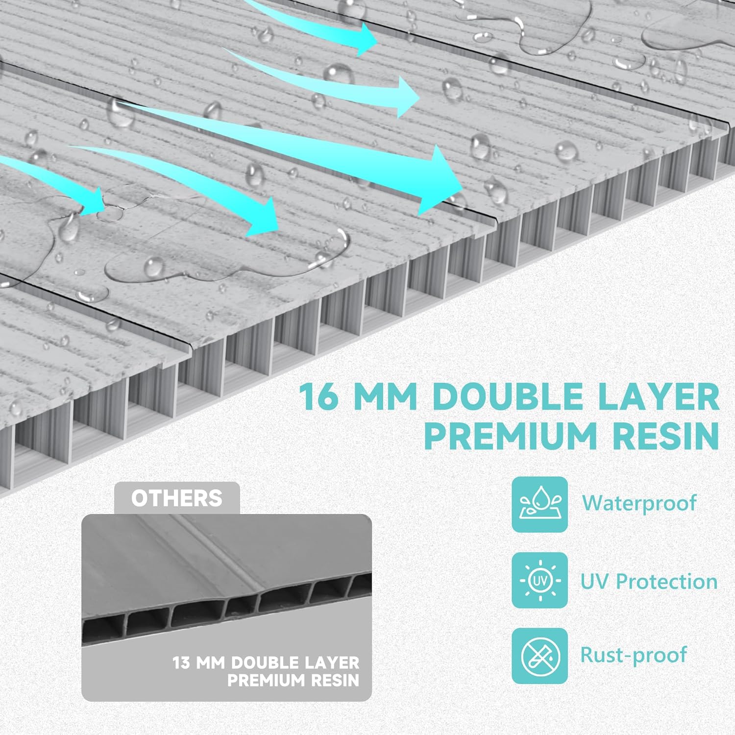 • Heavy-Duty Resin Construction – Crafted from high-quality resin, the shed offers exceptional durability and weather resistance, standing strong against UV rays, moisture, and temperature swings.