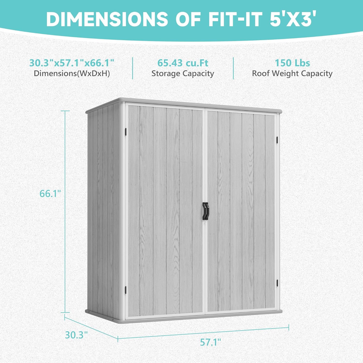 Greesum 5x3FT Plastic Outdoor Storage Shed with Floor, Resin Storaged Sheds with Lockable Door, Window & Vent, All-Weather Tool Sheds for Garden, Backyard, Pool Supplies, Light Gray (4.7×2.5FT)