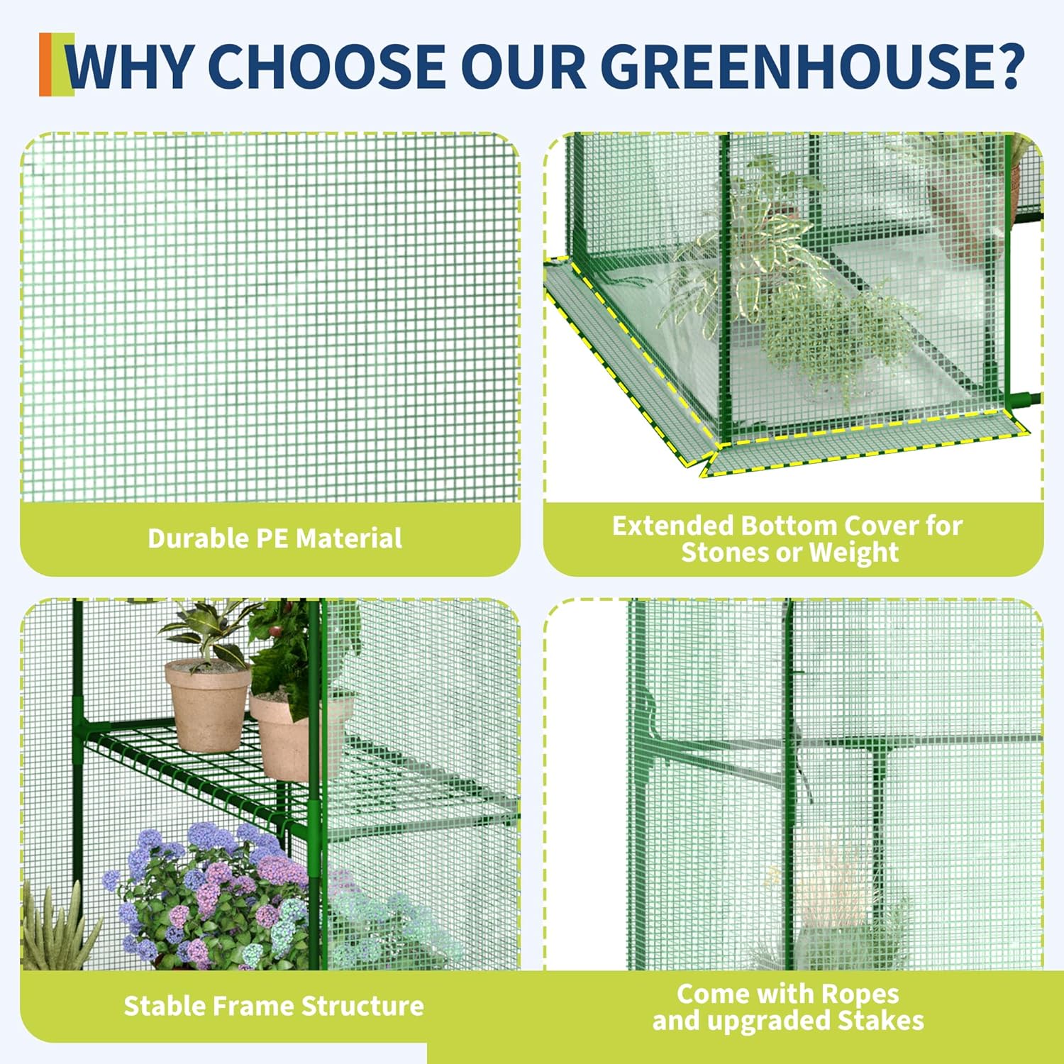 • Durable Construction: Made with a thickened PE cover and sturdy frame, this greenhouse kit ensures long-lasting protection against weather elements and supports healthy plant growth.