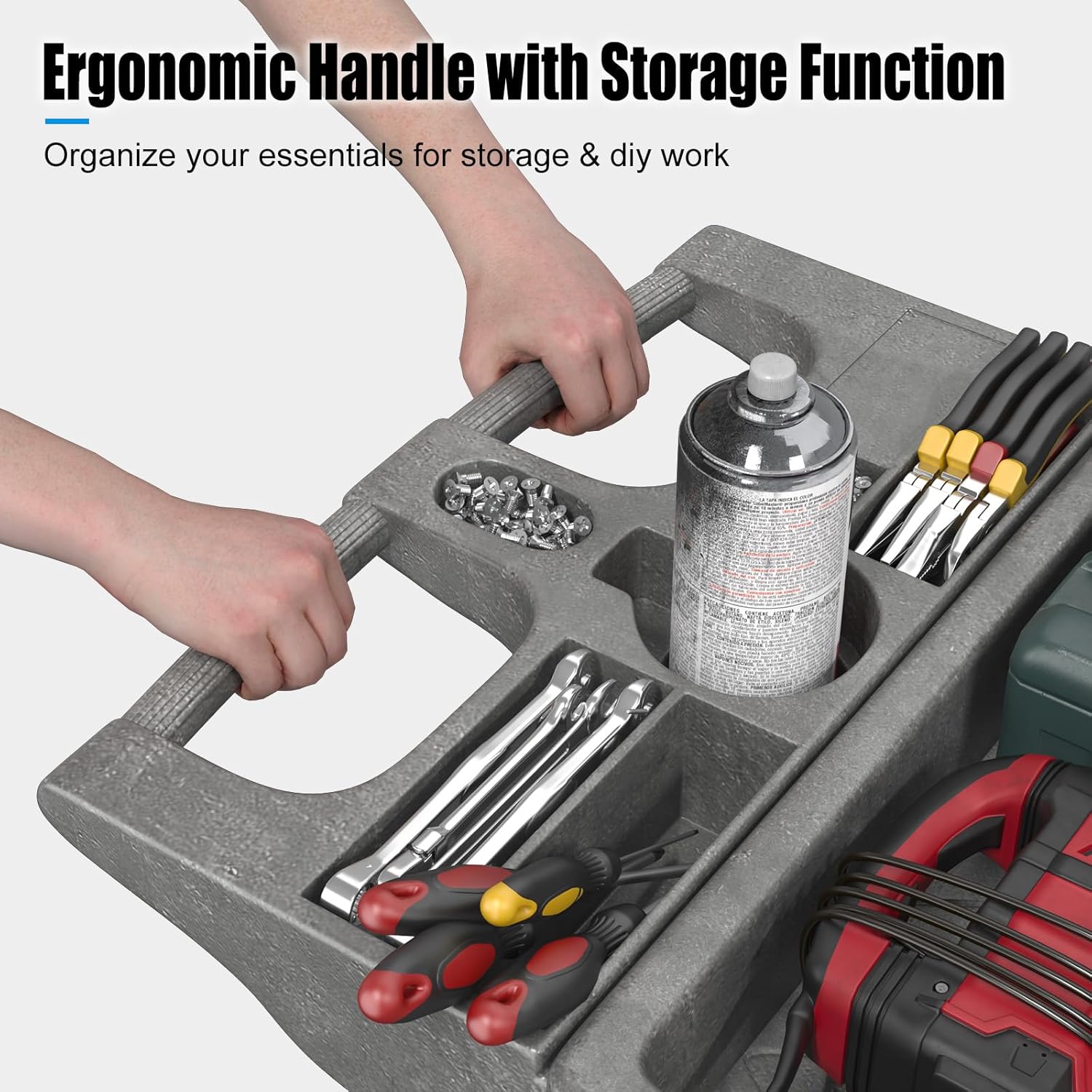 • 【Ergonomic Multifunctional Handle】 Dual handles designed for comfort and reduced fatigue, with a central storage space for cups, tools, or small parts. Perfect for keeping essentials within reach when using this work cart on wheels or rolling tool cart.